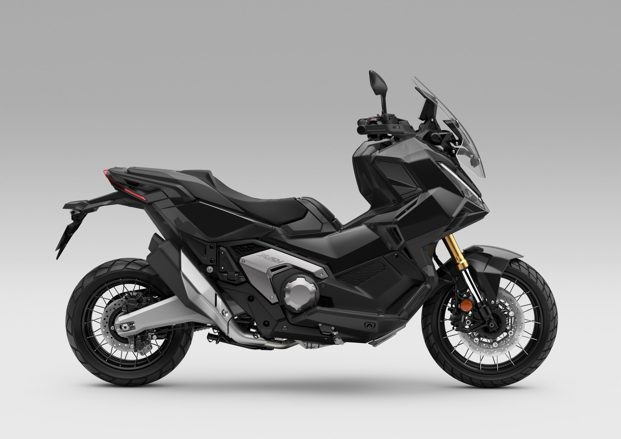 Zdůrazňuje terénní ambice modelu X-ADV předními mlhovými světly, předními bočními trubkami, černými nástavci chráničů rukojetí a stupačkami pro jezdce.