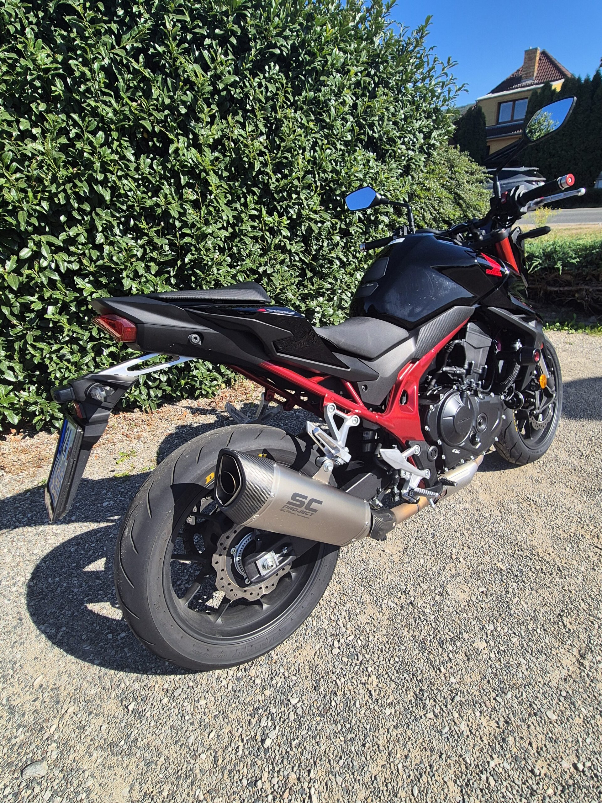 Testovací motocykl je vybaven bohatým originálním příslušenstvím: tank pad, boční padací protektory, kryt zadního sedla, hliníkový držák řidítek, balancery řidítek, sportovní stupačky řidiče, asistent řazení, koncovka výfuku SC Project