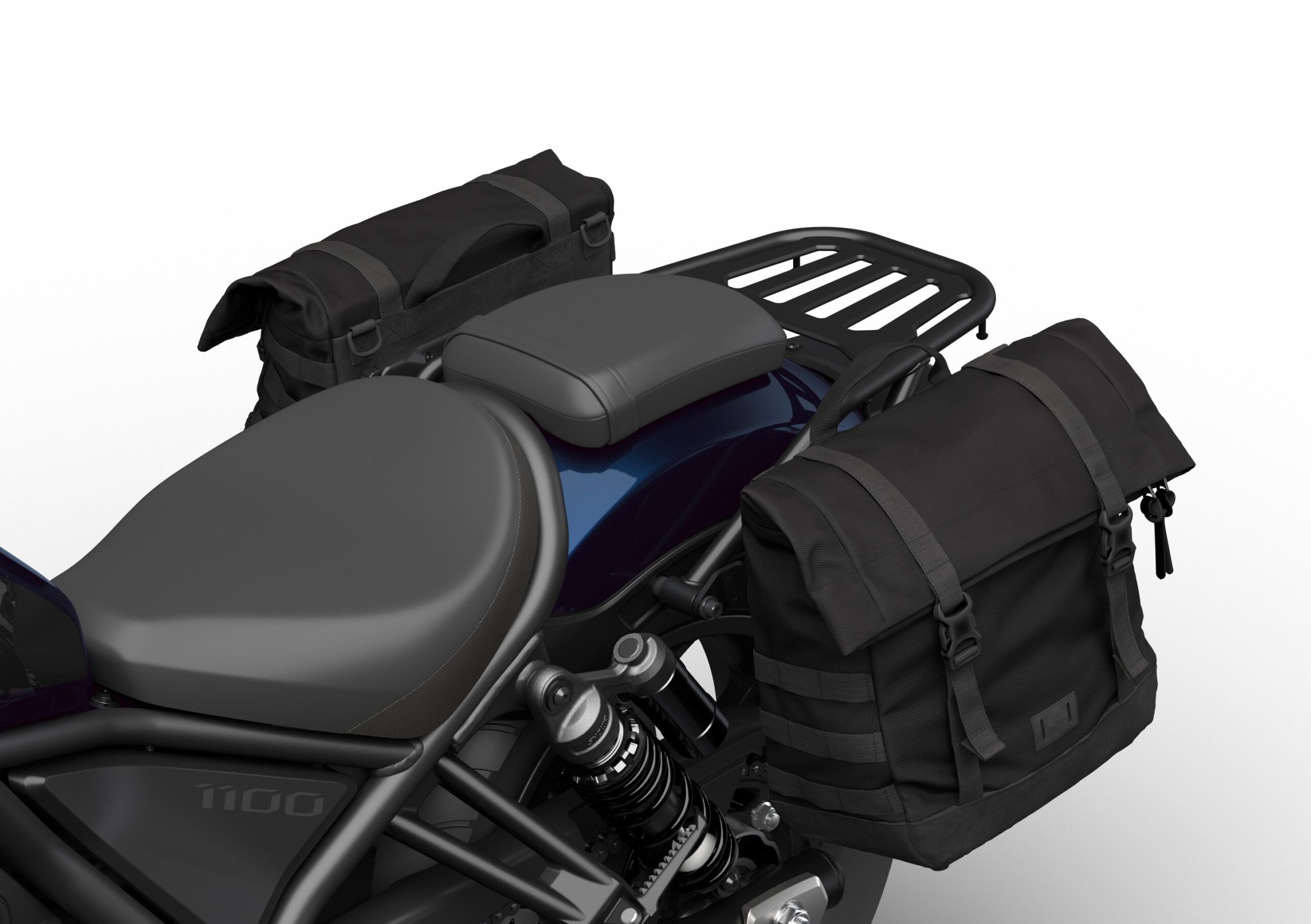 Paket Travel Pack (k dispozici v černé nebo hnědé barvě) představuje soubor příslušenství, které Rebel promění na motocykl vhodný pro dlouhé cesty: